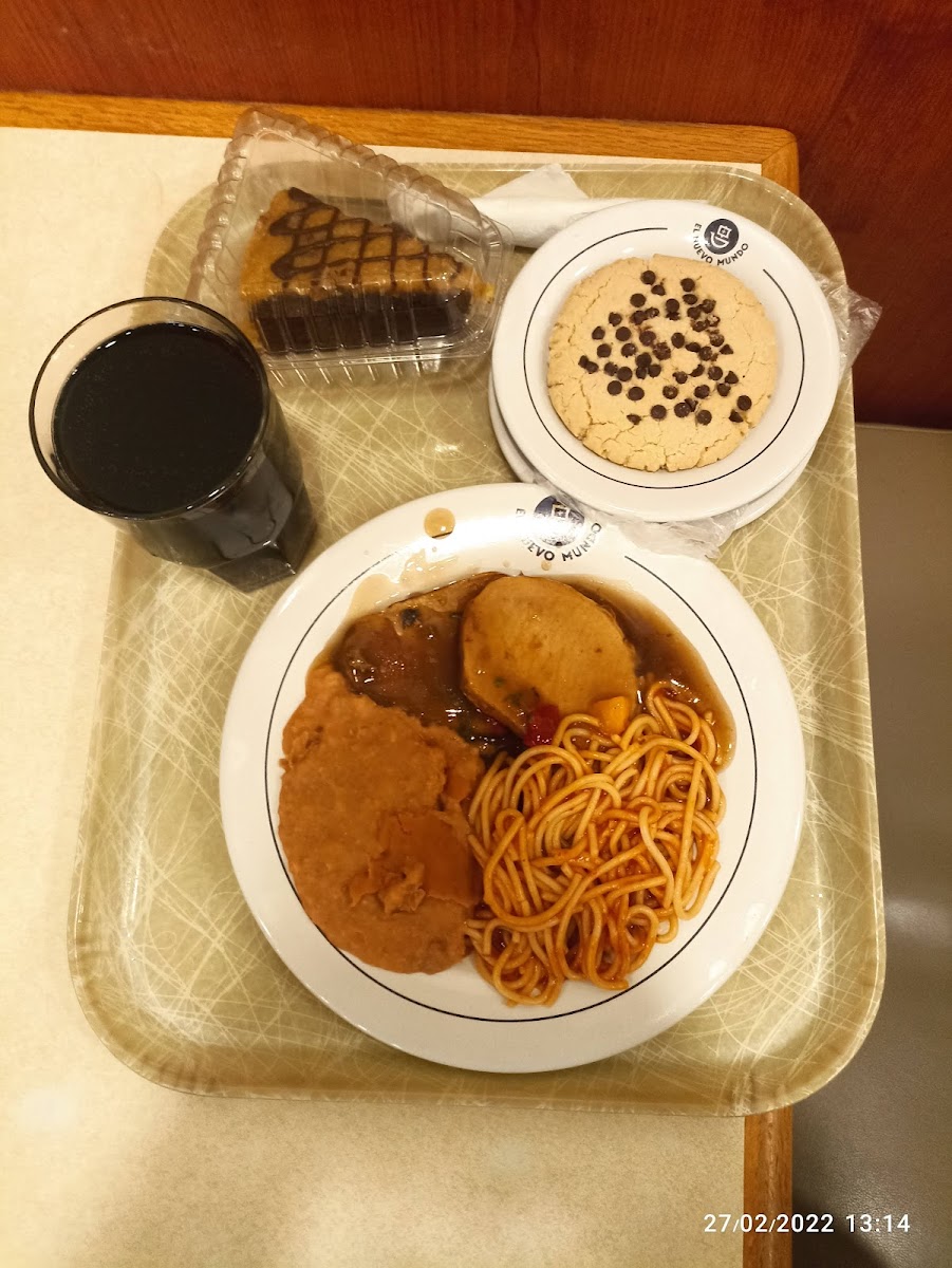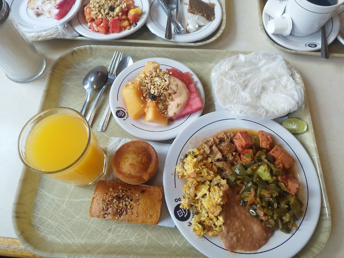 Locals often drop by here for their buffet breakfast, which includes hearty options such as enchiladas suizas frías, tostadas de pollo, and a rotating variety of both traditional and more comforting dishes like spaghetti and carne de res rostizada. The presence of both sweet and savory items—from freshly baked pan de dulce to cheesecake Oreo—means there’s something to satisfy a casual coffee session or a full sit-down meal.